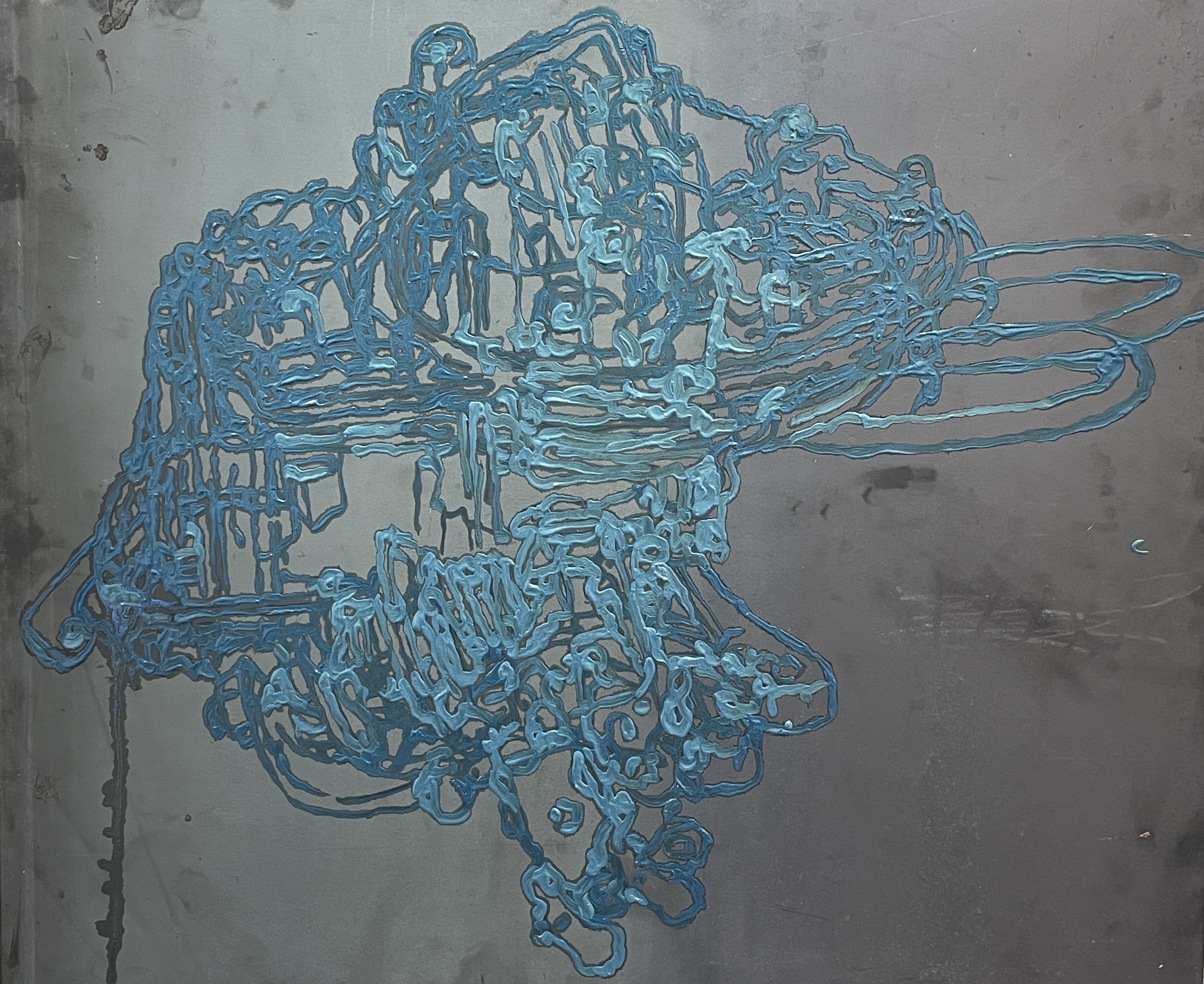 These paintings are beautiful, romantic, glorified depictions of classic cars and car parts sourced from automotive diagrams. Classic cars are collected and in their collection they serve as ruins and souvenirs of a tired, yet persistent American identity developed at the height of modernity. They signify desire for an idealized past living on as a fairytale, at odds with the realities of our late-capitalist post-industrial society. My work uses paradoxical combinations of materials, mark making, and aspects of American culture in order to undermine the nostalgia that festers in the gap between the fetishized object and its original context.
